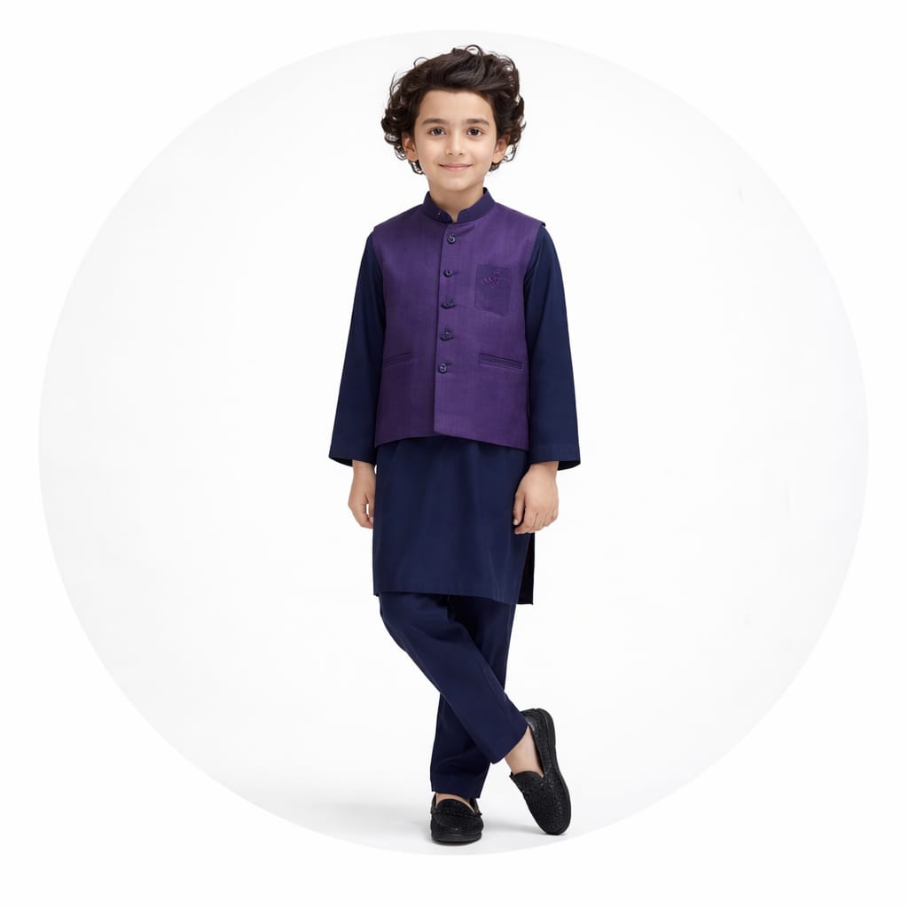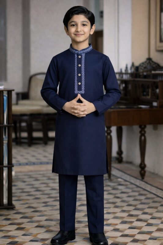 Boys Dark Navy Blue Khaddar Kurta Trouser Set