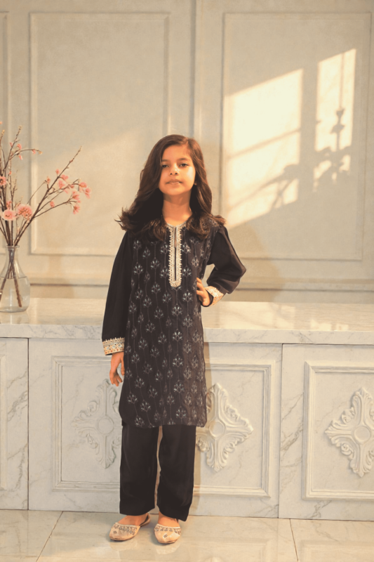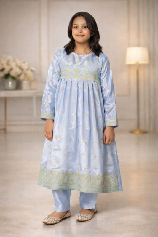 Noor Sky – Girls Premium Silk Embroidered Two-Piece Suit
