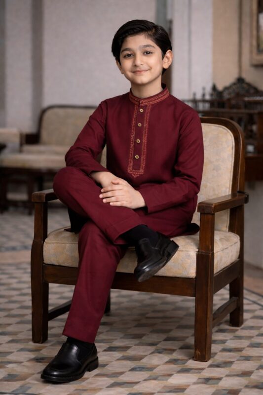 Boys Mehron Khaddar Kurta Trouser Set