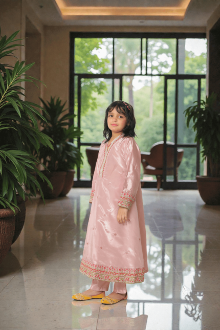 Noor Sky – Girls Premium Silk Embroidered Two-Piece Suit