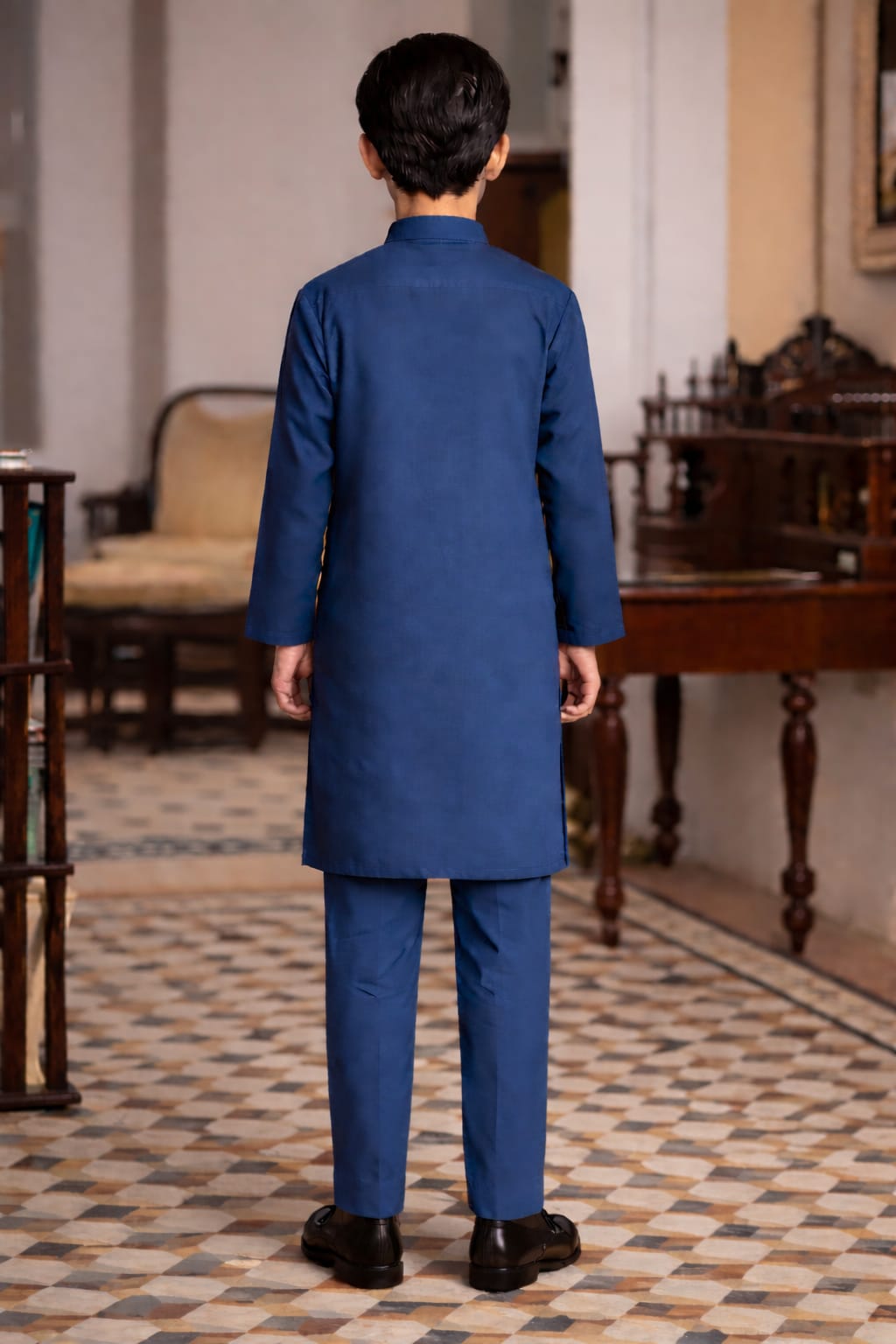 Boys Dark Navy Blue Khaddar Kurta Trouser Set