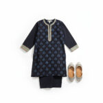 Boys Dark Navy Blue Khaddar Kurta Trouser Set