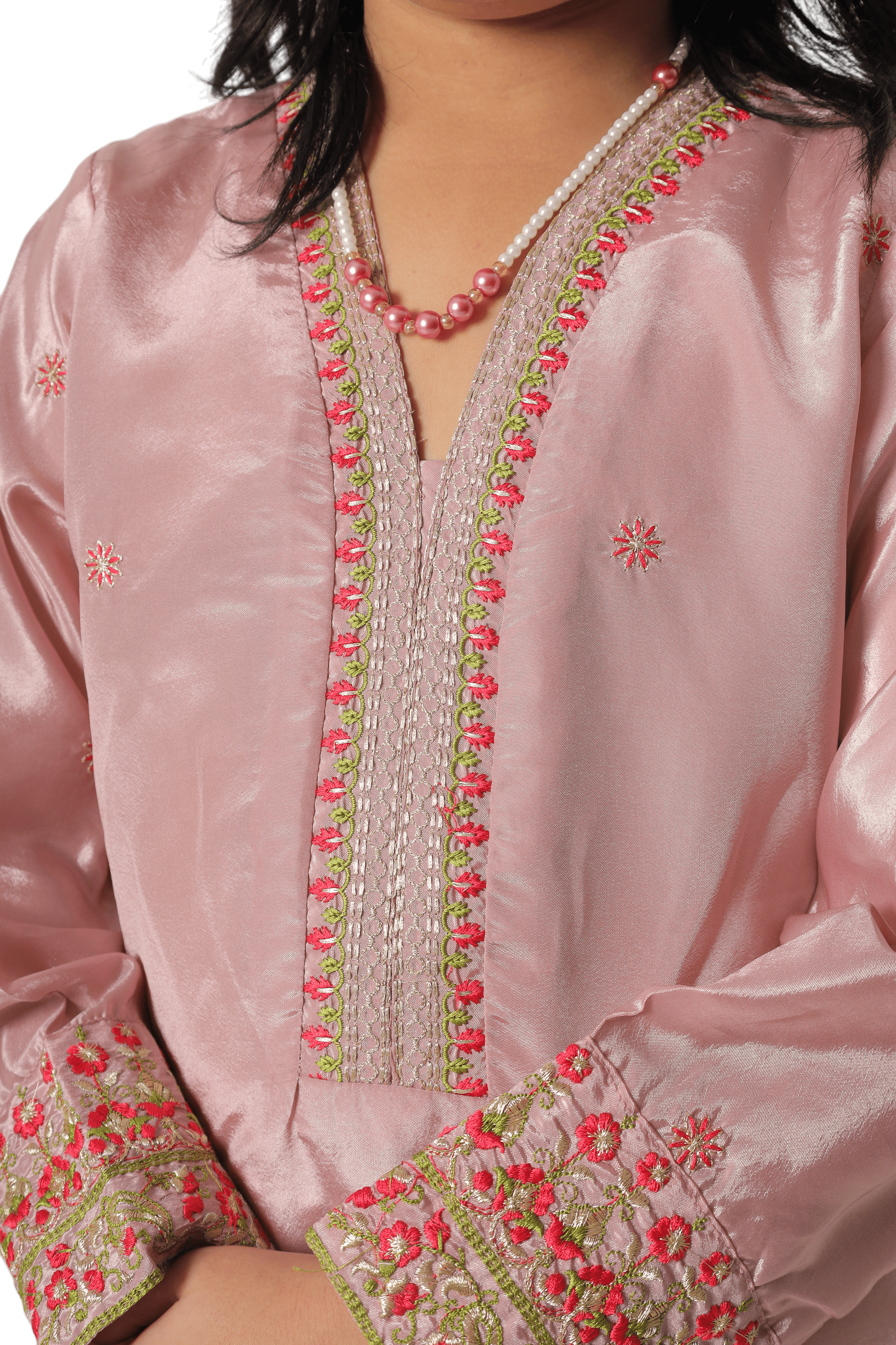 Rose Noor PromiumSilk Embroidery Two-Piece Suit
